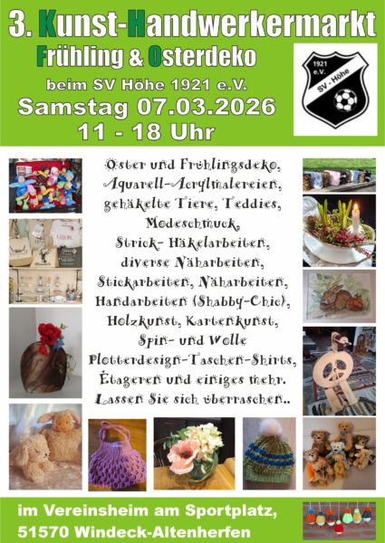 Der SV Höhe veranstaltet seinen 3. Kunst-Handwerkermarkt