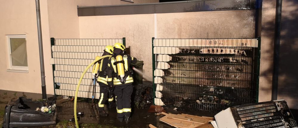 Beim Eintreffen der Einsatzkräfte brannten mehrere Mülltonnen unmittelbar am Gebäude. Die Ursache ist unklar.