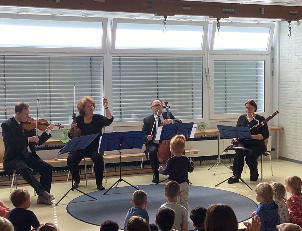 Im Rahmen des Musikprojektes „Musikschule goes KiTa“ besuchte am 29.04.2025 das Streicher-Ensemble „Drei plus Eins“ das Familienzentrum Vogelnest in Windeck-Rosbach. Das Konzert drehte sich rund um Ludwig von Beethoven, der vor über 250 Jahren verstarb.