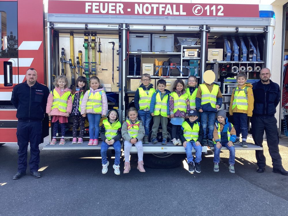 Einen spannenden Vormittag erlebten die Vorschulkinder (Regenbogenfische) vom Familienzentrum Regenbogenland aus Windeck-Dattenfeld, bei der Freiwilligen Feuerwehr in Dattenfeld. Begleitet von den pädagogischen Kräften, machten sich die Kinder zu Fuß auf den Weg zur naheliegenden Feuerwehrwache und erhielten dort kindgerechte Einblicke in die Arbeit der Feuerwehr.