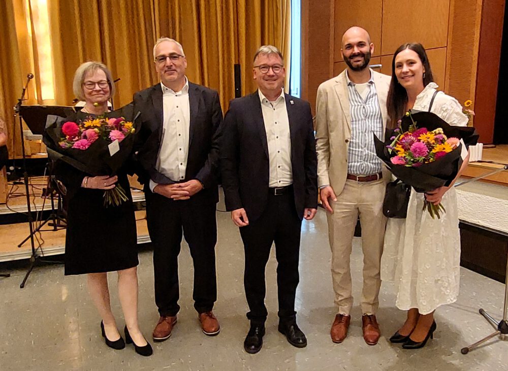 Es folgten die Fachschaften Deutsch und Erziehungswissenschaften, Ansprachen der Eltern- und Schülervertretungen, die Schulleitungsgruppe und die Mitarbeitervertretung sowie die gegenseitigen Glückwünsche der beiden Hauptpersonen selbst, nämlich Ralf Dierenfeldt und Luca Winter.