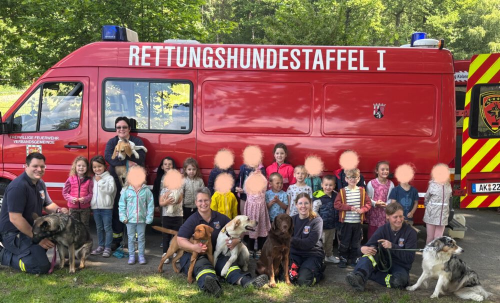 Doch damit nicht genug: In der darauffolgenden Woche bekam der Kindergarten Besuch von der Rettungshundestaffel aus Hamm/Sieg.