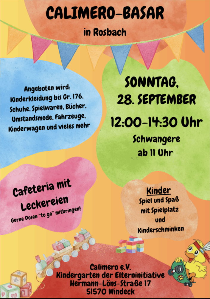Ihr findet auf diesem Basar ein vorsortiertes Sortiment an Baby- und Kinderkleidung, jede Menge Spielzeug sowie Bücher, Umstandsmode …