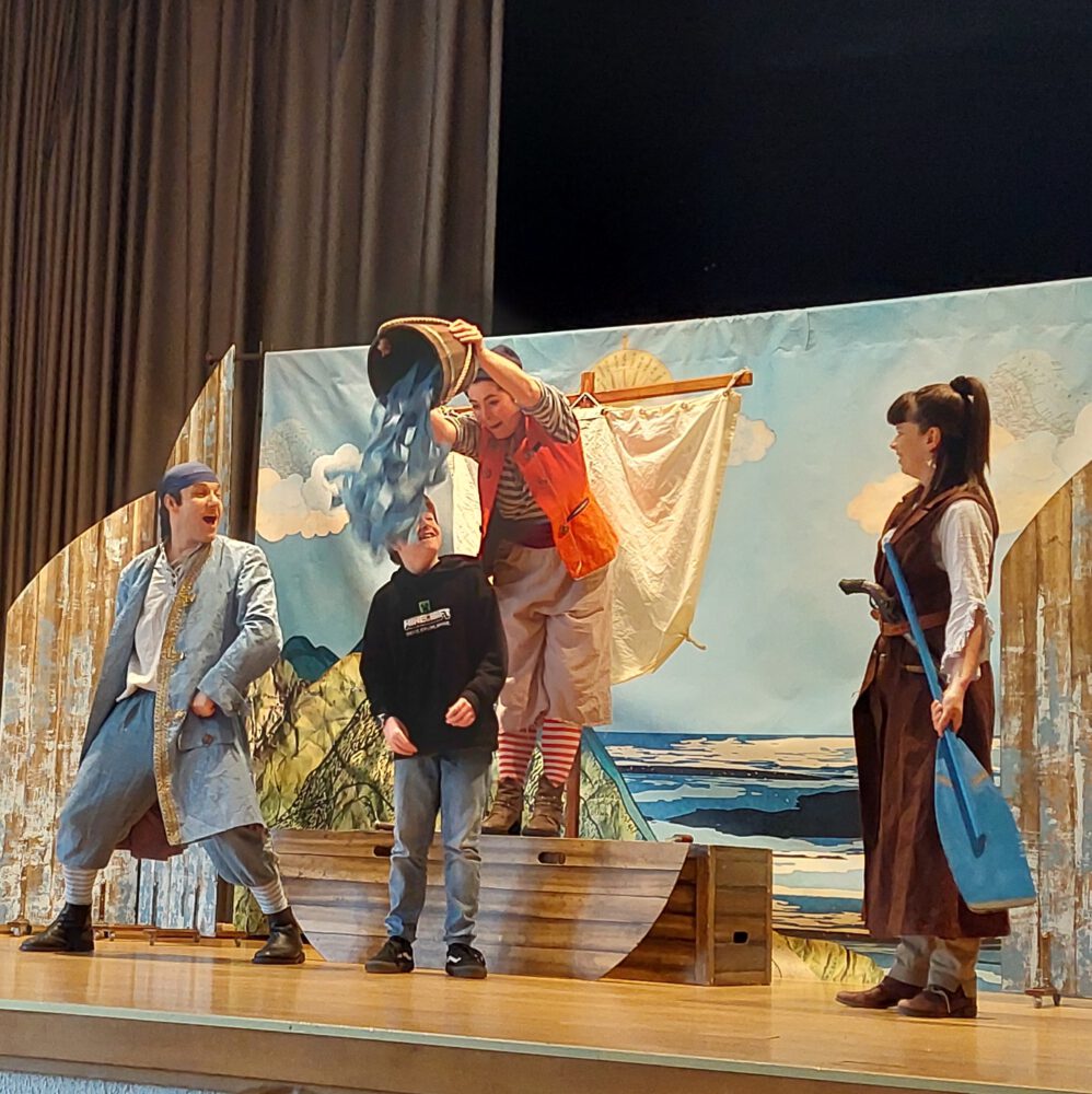 Besonders gut hat mir gefallen, als die Piraten Clemens aus unserer Klasse auf die Bühne geholt haben. Sie haben ihn ausgeraubt und einen Eimer Wasser auf den Kopf geschüttet!