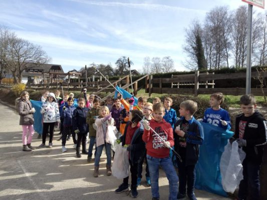 Ausgestattet mit Handschuhen, Zangen und Müllsäcken gingen die Kinder fleißig an die Arbeit und waren stolz auf ihr Ergebnis. Es kamen einige Säcke Müll zusammen. Gemeinsam haben die Kinder überlegt, wieso es den Leuten so schwer fällt ihren Müll in einen Mülleimer zu werfen – leider ist ihnen außer Bequemlichkeit der Menschen nichts eingefallen. Viele der Kinder haben sich vorgenommen die Augen offen zu halten und Müll am Wegesrand einzusammeln und zu beseitigen, natürlich auch außerhalb des Aktionszeitraums.