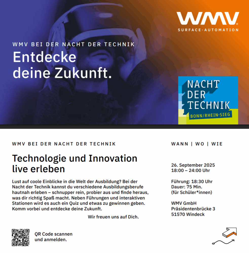 Lust auf coole Einblicke in die Welt der Ausbildung? Bei der Nacht der Technik kannst du verschiedene Ausbildungsberufe hautnah erleben – schnupper rein, probier aus und finde heraus, was dir richtig Spaß macht.