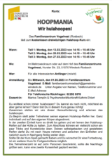 Die Kooperationspartner Familienzentrum Vogelnest (Rosbach) und die Familien- und Erziehungsberatungsstelle Eitorf laden zum kostenlosen Themennachmittag ein: Wann: Mittwoch, den 15.03.2023 von 14:00 – 16:00 UhrWo: Im Mehrzweckraum des Familienzentrums Vogelnest, Hurster Str. 23, 51570 Windeck-RosbachWer: Für alle interessierten Erwachsenen (m/w/d)Anmeldung:…