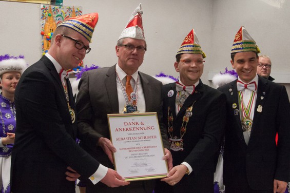Der Bezirksvorstand (hier mit Landrat Sebastian Schuster) freut sich über die Aufnahme der KulturInitiative Windeck e.V. im Bund Deutscher Karneval e.V. – Bild: Walter Keuthage