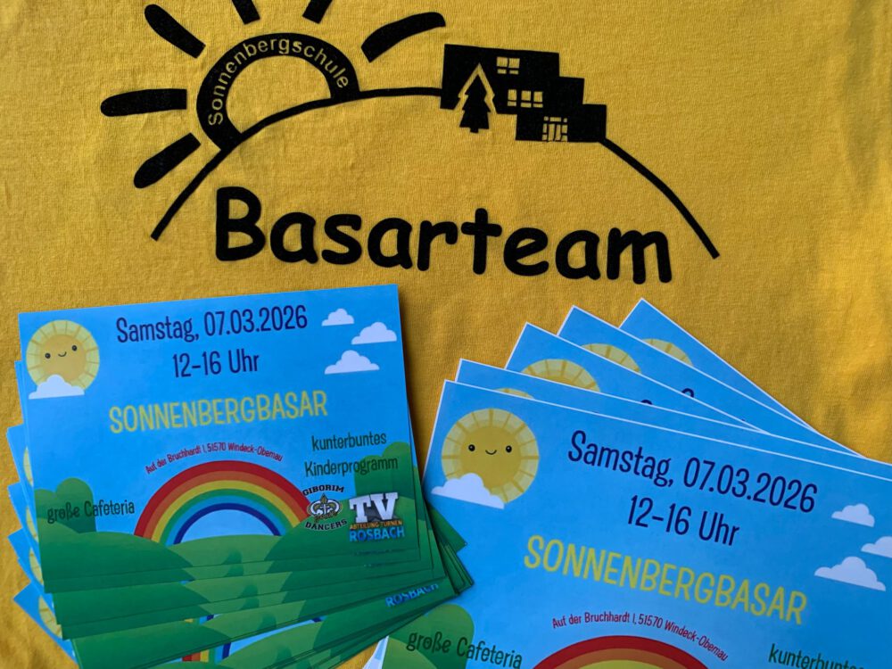 „Herzlich Willkommen“ auf dem Sonnenbergbasar heißt es wieder am Samstag, den 07.03.2026 in der Grundschule Rosbach-Obernau. In der Zeit von 12.00 – 16.00 Uhr öffnet sie ihre Türen für viele kleine und große Besucher.