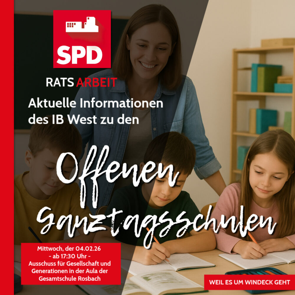 Die SPD Windeck hat bereits im Dezember 2025 mit einem klaren politischen Impuls gehandelt: Mit unserem Antrag zur Erstellung eines Notfallkonzepts für die Offenen Ganztagsschulen wollten wir sicherstellen, dass die Betreuung der Kinder auch dann gewährleistet bleibt, wenn der aktuelle Träger – die IB West gGmbH – organisatorisch oder finanziell ins Straucheln geraten sollte.