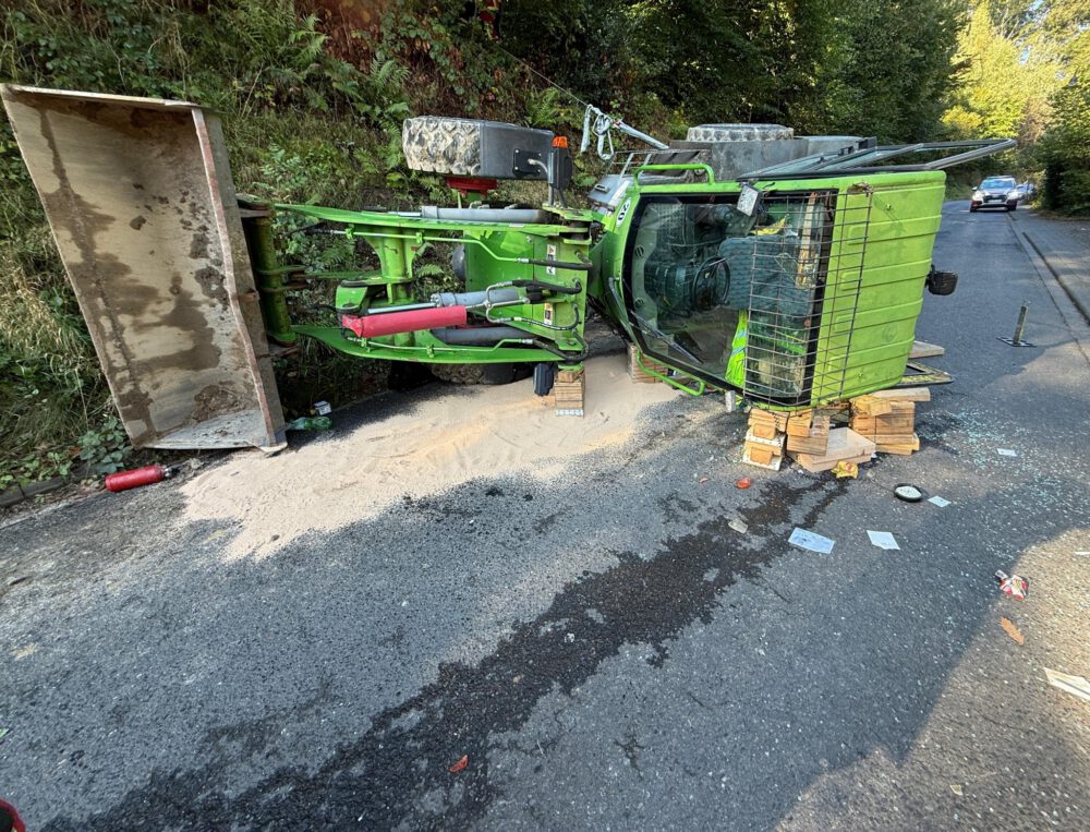 Der Unfall ereignete sich gegen 9:00 Uhr in der Straße „In der Raubach“. Der junge Mann kam mit dem Radlader von der Fahrbahn ab und stieß gegen die rechte Begrenzung. Dadurch kippte die Baumaschine auf die linke Seite und begrub den Fahrer unter sich.