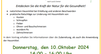 Wir laden Sie zum kostenfreien Themennachmittag ein für Eltern und alle Interessierten. Kinderkrankheiten natürlich lindern - Hausmittel für Babys und…
