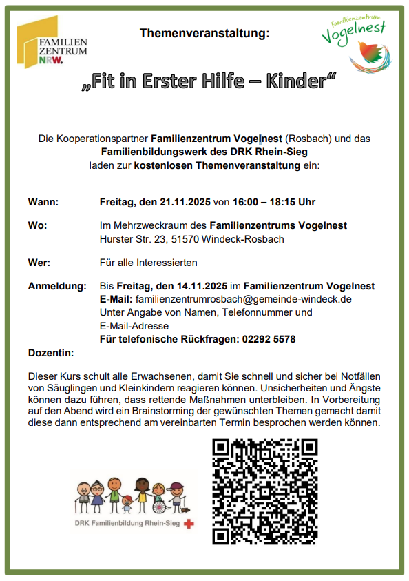 Die Kooperationspartner Familienzentrum Vogelnest (Rosbach) und das Familienbildungswerk des DRK Rhein-Sieg laden zur kostenlosen Themenveranstaltung ein: