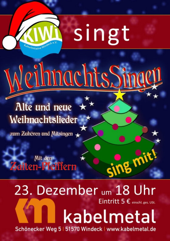 Liebe Mitglieder, liebe Freunde und Freundinnen, sehr geehrte Damen und Herren, In guter Tradition lädt KIWi zum weihnachtlichen Mitsingkonzert ein! Alte und neue Weihnachtslieder zum Zuhören und Mitsingen: von „Feliz Navidad“ bis „Stille Nacht“. Freuen Sie sich auf einen stimmungsvollen Weihnachtsliederabend am Dienstag, den…